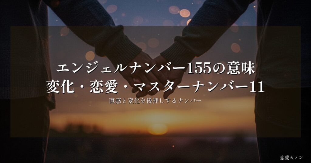 何気なく目にした155という数字。時計、レシート、車のナンバープレート。「また155だ」と気づき始めた時、それは偶然じゃないのかもしれません。エンジェルナンバー155は、変化と新しい始まりのエネルギーを持つナンバーです。直感に従って動き出すよう、... エンジェルナンバー