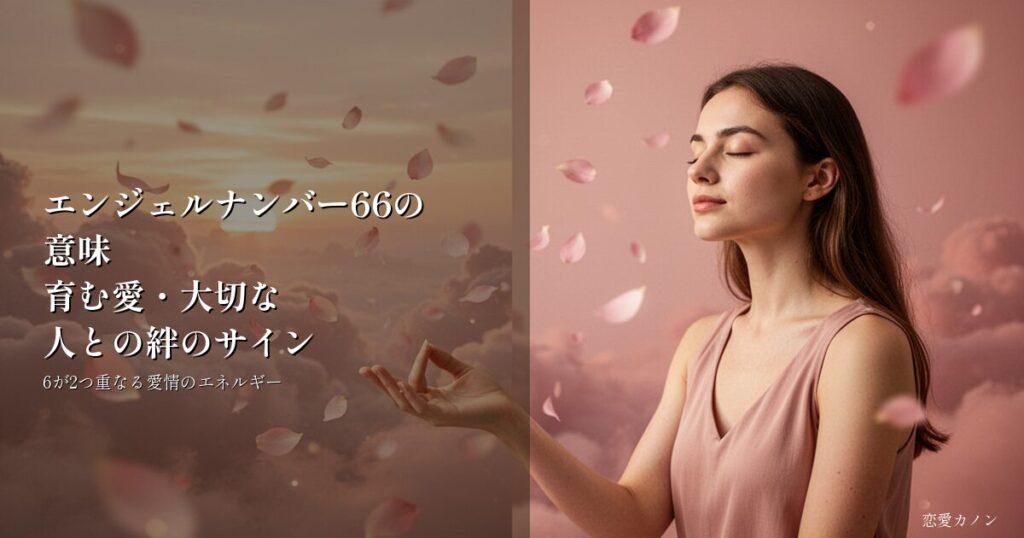 数秘術の世界では、6は「愛情」「調和」「家庭」を象徴する数字とされています。その6が2つ重なる「66」は、愛情のエネルギーが倍増した状態を示す、特別な数字なんです。 ホテルの部屋番号、ページ数、レシートの小計。日常の中でふと目にする「66」。そ... エンジェルナンバー