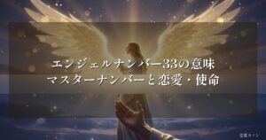 エンジェルナンバー33の意味|マスターナンバーと恋愛・使命 「33」が気になって、この記事にたどり着いたのではないでしょうか。偶然にしては多すぎる、でも意味があるとしたら何なのか。 そんな問いを心のどこかで抱えていません...